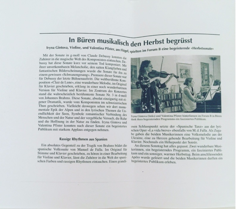 Aufnahmen des Duos wurden von Radio Lemberg (Ukraine) im Jahre 2016 veröffentlicht. Die Musikerinnen sind Stipendiatinnen der Schweizer Stiftung für begabte Musiker „LYRA“.